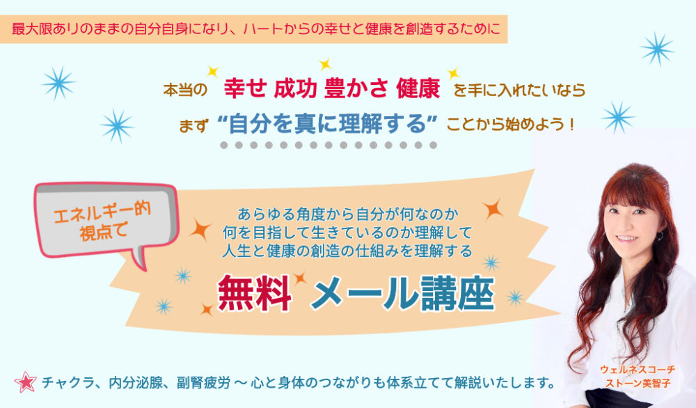 それが、身体的な症状として現れている “副腎疲労” を実例に、心と身体のつながりを見ていきます。 そのことで、人生と健康の創造の仕組みが理解でき、 今出ている身体的症状から、自分の理解を深めることができます。